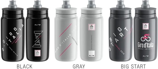 ジロ・デ・イタリア2018記念限定ボトルは完全数量限定の特別なデザイン。ベースとなるFLYボトルはエリートの実験的研究プロジェクトの結果、無臭で柔らかく耐久性のあるプラスチック素材を使用した最も軽いスポーツボトルで、最高のワールドツアープロチームに使用されている。人間工学に基づいた形状のキャップは複合素材を用いて作られていて、従来のキャップに対し液体の流れがより容易に、より理想的になった。